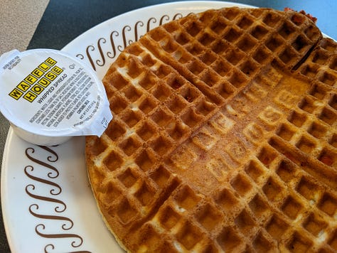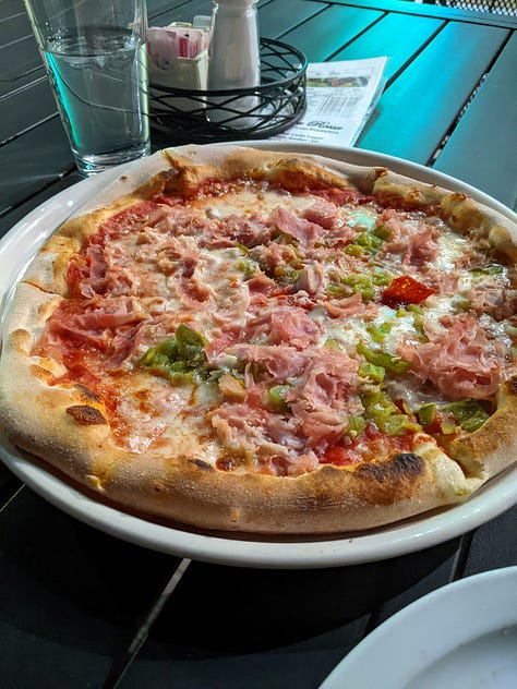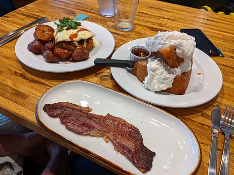 We try to find non-chain/local restaurants, and enjoyed a pizza with New Mexican green chile at Luna Rossa in Las Cruces on the outbound. The day after our big bike ride we had a great brunch at Phoebe's, and yummy tacos at the Taco Joint, San Jacinto - both in Austin. After some very underwhelming bbq in Junction, we tried again in Houston, and were glad we did - everything we had at the Pit Room was suuuuper tasty (dove right in and polished it off without taking any pictures)! Ohand we did go to a Waffle House, which seemed more like something to hit on a long rando ride, but now I can say I’ve been. (We don’t have WH in California.)