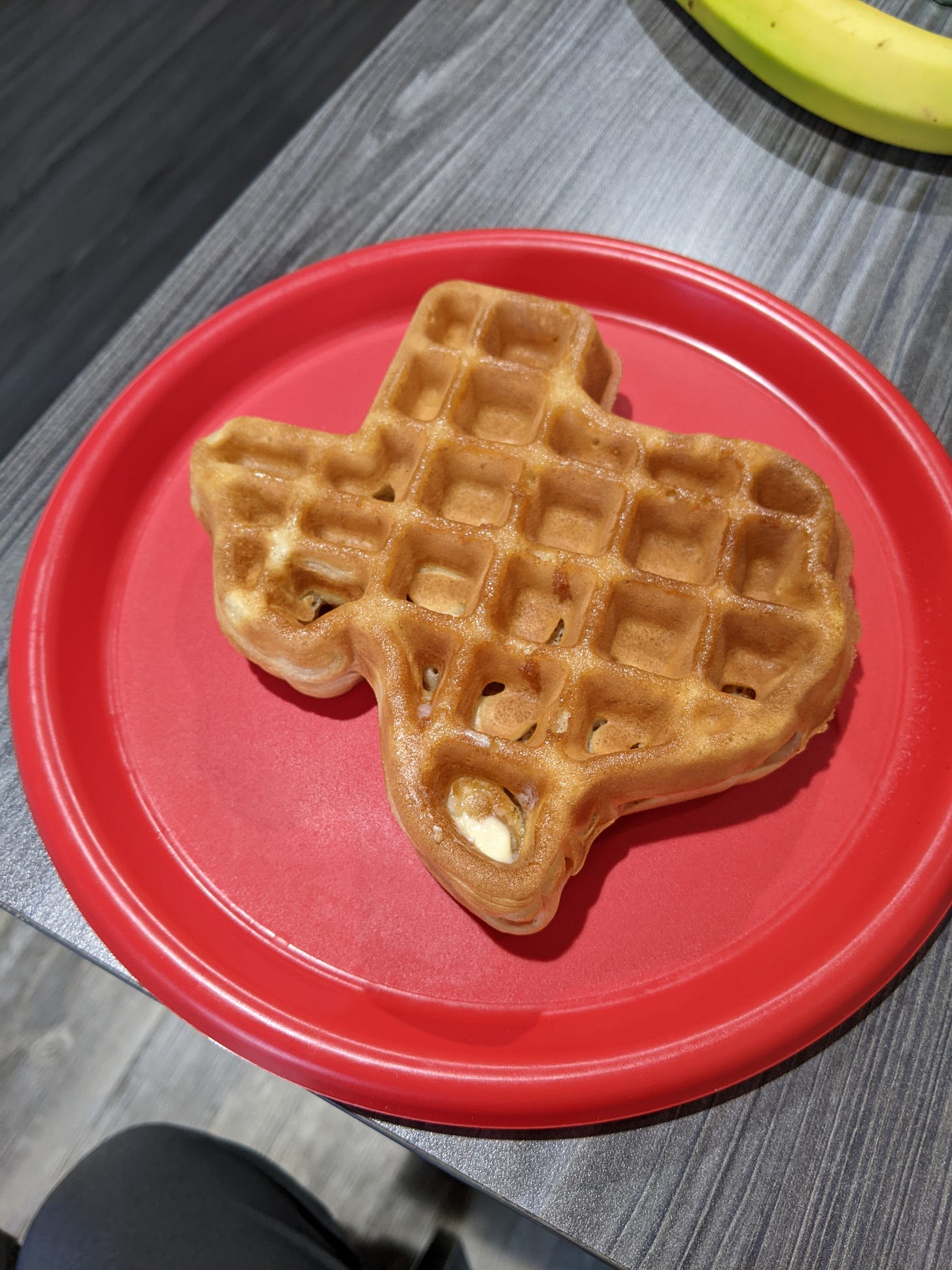 Perhaps the most memorable food item we had were the Texas shaped waffles at the hotel breakfast in Junction, TX! And MSH remembered we happened to be carrying real maple syrup!!!